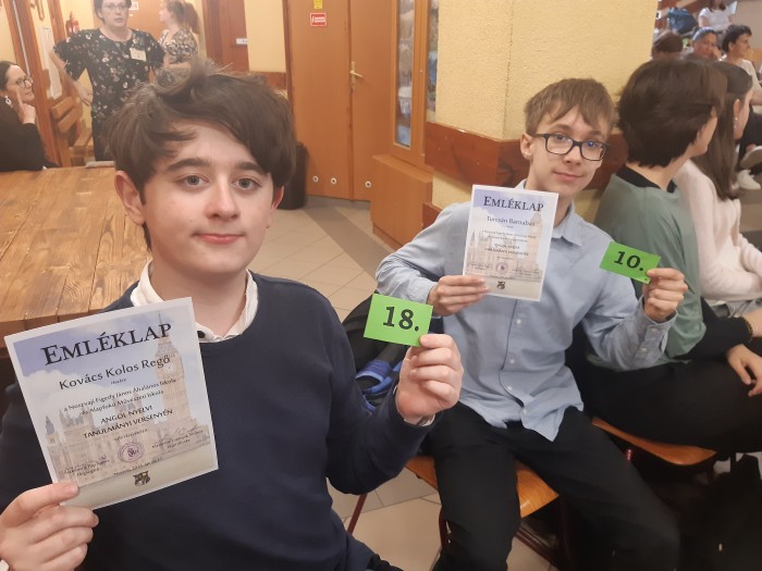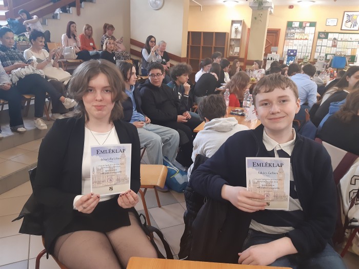 A versenyen 1. helyezést ért el Turcsán Barnabás, és kiemelkedő szóbeli szereplésével 4. helyezést ért el Hornyák Panka.