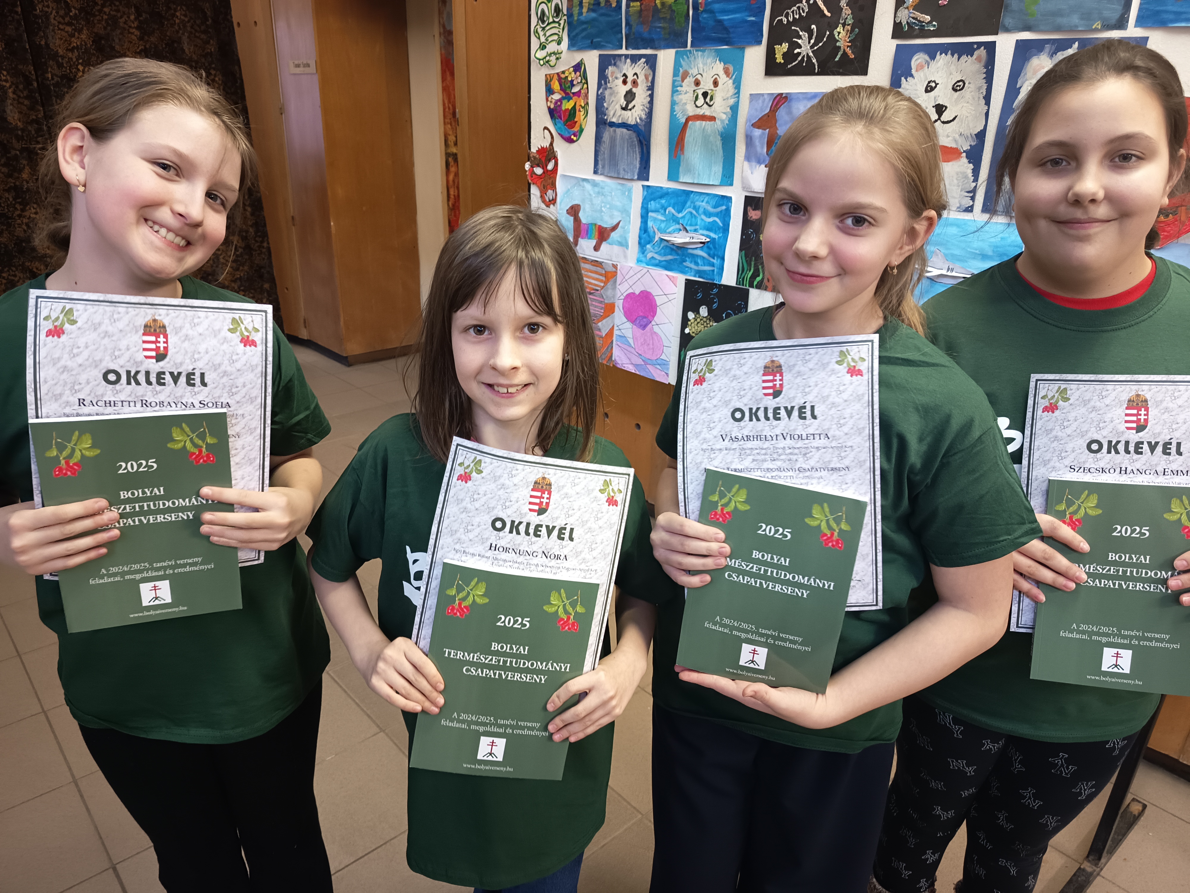 Hornung Nóra, Raschetti Robayna Sofia,Szecskó Hanga Emma ès Vásárhelyi Violetta " Olajbogyók" csapata, a Bolyai Termèszettudományos Verseny Orszàgos írásbeli fordulóján.